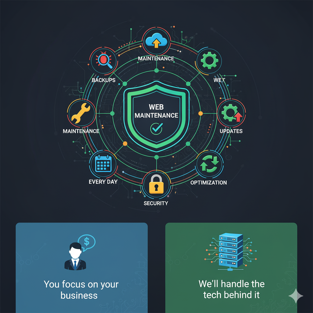 From bug fixes to backups, we keep your website running smoothly every day. You focus on your business — we’ll handle the tech behind it.
